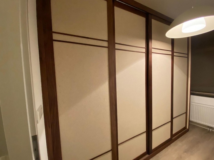 kast met schuifdeuren (Deuren: amerikaans noten met wolvilt) Vorige / Previous Vergroten / Enlarge Volgende / Next